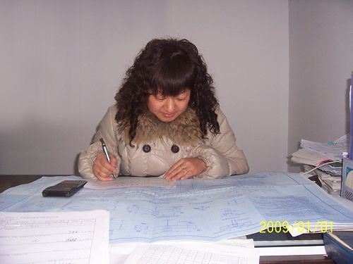 2009年里,她几乎没有休息几个假日,先后参与了江西九江2×180m2烧结、湘钢5m宽厚板轧机精整、华菱湘钢二烧易地大修改造、阿富汗艾娜克铜矿、湛江平整场地(1)-(7)标、太钢、江阴4300mm轧钢、龙腾特钢技改、马鞍山长江钢厂高炉转炉等83个项目的投标报价。