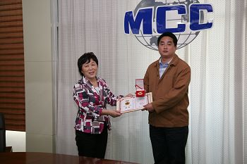 57日下午,市总工会副主席苗云和经济部部长孙维胜受省总工会的委托前来公司总部,颁发十七冶荣获的“安徽省劳动竞赛先进集体奖牌。以表彰公司在团结动员广大职工积极投身“当好主力军、建功‘十一五’”立功竞赛中取得的成绩。