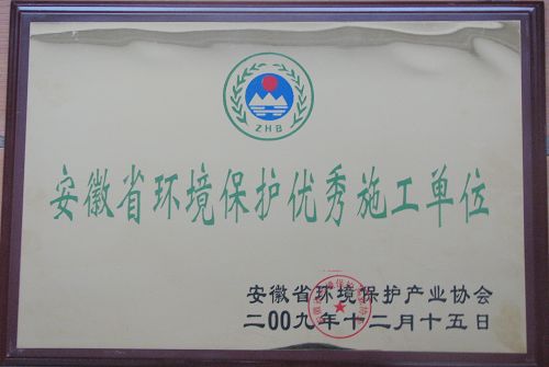 日前,安徽省环保局产业协会对我公司2009年度的环境保护工作进行了评估,经审查授予我公司“安徽省环境保护优秀施工单位”的荣誉称号,并颁发了荣誉证书和奖牌。