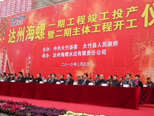 23,由十七冶水泥工程公司承建的四川达州海螺2×4500t/d的水泥熟料生产线一期工程顺利竣工投产,十七冶副总经理唐灶荣应邀出席了典礼,并参加了二期工程的开工奠基仪式。
