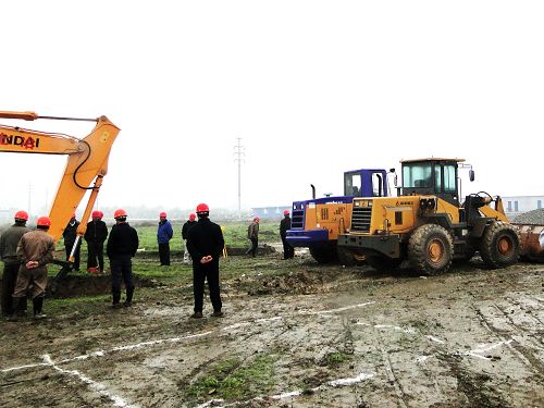 1216,由城建公司承建的成都海螺型材工程在雨中掘起了第一铲土方,标志着这项年产8万吨型材工程正式开工建设。业主负责人、总监、城建公司经理和项目部全体人员冒雨参加了简短的开工仪式。
