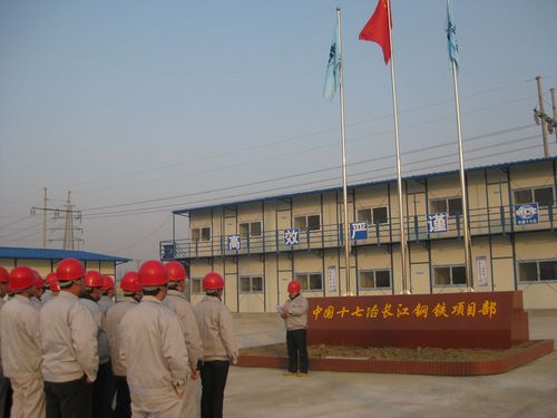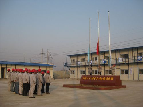 2010年元月一日,新年第一天,中国十七冶安徽长江钢铁公司技改工程项目部全体员工举行升旗仪式。迎着初升的太阳,在国歌激昂的乐声中,项目经理吴民带领两名大学生新员工将国旗和企业司旗缓缓升起,标志着长江钢铁项目在新的一年大干快上的开始。
