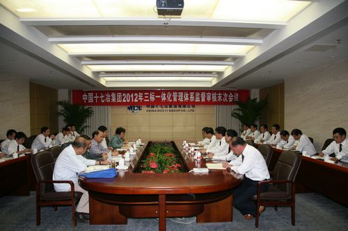 1014下午,公司召开2012年三标一体化管理体系监督审核末次会议。认证审核组对我公司的质量、环境、职业健康安全管理体系运行工作给予了充分的肯定和高度评价,并宣布中国十七冶集团通过本次管理体系监督审核及工程设计扩项认证审核。