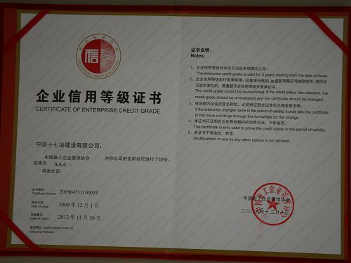 日前,中国施工企业管理协会对十七冶信用等级进行了评估,经过对各方面信誉审查后,授予十七冶“