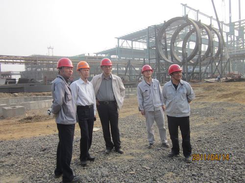 414下午,公司总工程师尹万云在总经理助理、梅山项目部经理王青山的陪同下对梅钢二期公辅工程施工现场进行检查指导。