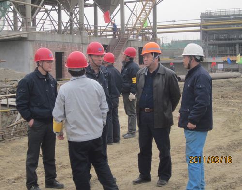 3月16日上午,集团公司副总经理唐灶荣在项目部常务副经理夏映杰的陪同下,对梅钢二期公辅工程施工现场进行检查指导。