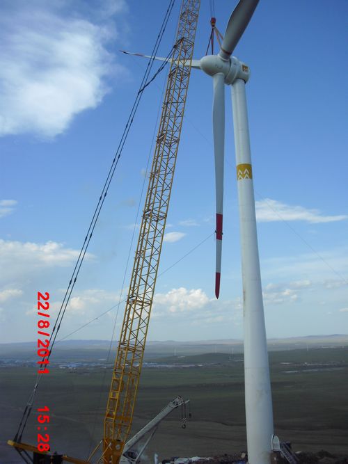 华润满洲里风电场位于内蒙古自治区呼伦贝尔草原西部。我公司负责该风场一期、二期99MW风力发电场的道路施工、风机基础以及风机的安装工程。一期工程于61安装完成。二期工程共33台金风1.5MW风机,分为四种机型。由于机型的多样化,施工工艺的不同,给吊装带来了很大的难度。在整个风机机组的安装过程中,项目部技术人员仔细研究技术指导手册,掌握了每一种机型的安装技术,确保了安装质量达到技术标准的要求。