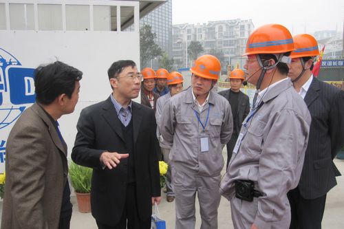 1117日,安徽省建设厅副厅长李健、蚌埠市政府副秘书长许鹏林率皖北9市、36县住建委系统主要领导近200人到中国十七冶集团公司承建的蚌埠金融中心项目进行安全、质量、文明施工现场观摩。