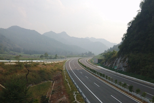 广西百靖高速公路工程起于田阳县那坡镇那音村接南百高速,止于靖西县新靖镇亮表村接广西高速公路网规划中的靖西至龙邦公路,途径田阳、德保、靖西三县,全长98公里。主线采用双向四车道高速公路标准修建,设计行车速度100公里/小时,路基宽度为26米。中国十七冶集团承建其路基5标段和路面1标段。路基5标项目工程主要包括桥梁工程5座全长1264米,隧道工程1座全长412米,路基土石方工程挖方88.26万立方米、填方73.14万立方米,全长3650米。路面1标施工内容主要包括主线25.615公里沥青路面、坡洪连接线12.697公里混凝土路面及其部分附属工程施工。该项目的建设对完善广西高速公路网布局,加强广西西部、大西南与东部沿海地区经济交通联系,促进广西西部经济协调发展,推动国家西部大开发战略和泛珠江三角洲区域合作战略的实施,构筑中国-东盟国际大通道,推进北部湾经济区的发展建设起到重要的推动作用。