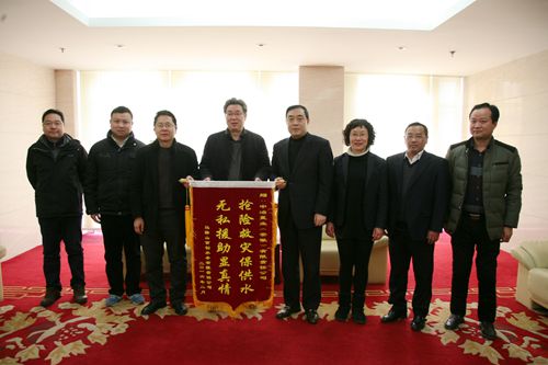 2月24日上午,马鞍山市建委副主任阿克斌、马鞍山首创水务公司总经理杨邦华一行到中国十七冶集团赠送锦旗,对公司在春节前支援市政府和水务公司开展老旧小区大批冻裂水管抢修工作,表示衷心感谢。公司副总经理蔡进代表公司接受了锦旗并致谢。