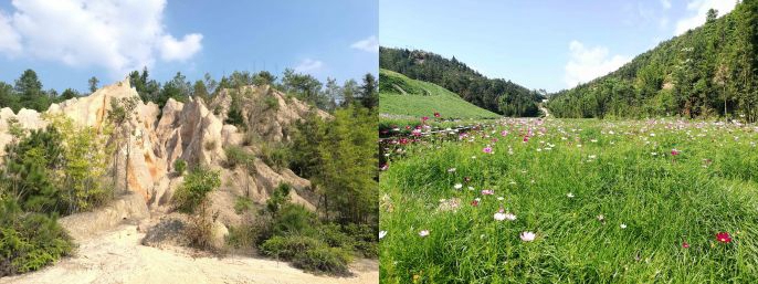 中国恩菲承建的江西赣州赣县区大田乡废弃稀土矿区重金属综合治理EPC工程(一期)修复前后对比图