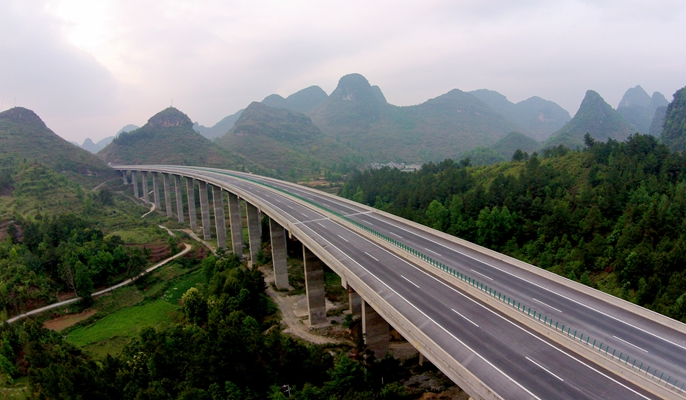 广西百色至靖西高速公路项目于201011月开工建设,201412月建成通车。广西百靖高速公路工程起于田阳县那坡镇那音村接南百高速,止于靖西县新靖镇亮表村接广西高速公路网规划中的靖西至龙邦公路,全长98公里,主线采用双向四车道高速公路标准修建,设计行车速度100公里/小时,路基宽度为26米。中国十七冶集团承建其路基5标段和路面1标段。路基5标项目工程主要包括桥梁工程5座全长1264米,隧道工程1座全长412米,路基土石方工程挖方88.26万立方米、填方73.14万立方米,全长3650米。路面1标施工内容主要包括主线25.615公里沥青路面、坡洪连接线12.697公里混凝土路面及其部分附属工程施工。该工程还积极推广应用了建筑业10项新技术中的7大项、11个子项,获得中冶建筑新技术应用示范工程