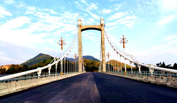 “五桥二路”项目是罗甸县委、县政府的重大民生实事工程之一。其中罗甸1号桥为独塔不对称自锚式悬索桥,跨度组合为102米+71米,桥梁总长180米;3号桥为实腹式圆弧拱风雨桥,全桥长128.4米,桥面宽度16.5米,与规划20号路相接;4号桥为空腹上承式板拱桥,桥跨布置为3×45米,桥梁总长155.43米;5号桥为1-90米上承式混凝土箱型拱桥,桥梁总长205.66米;六号桥为48米+88米+48米预应力混凝土连续钢构桥,桥梁总长197米;16号路全长321.4米,采用单幅路形式,路基宽度24米;17号路全长870米,采用单幅路形式,路基宽度16.5米。项目建成将改善城东新区交通条件,加快马草寨岛内开发的步伐,带动罗甸县经济快速发展。