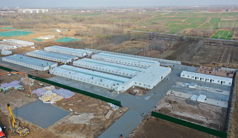 为迅速响应政府疫情防控部署要求,支援惠民县防疫隔离点的建设,建筑分公司山东惠民县高官项目部火速行动,挑灯奋战,24小时不间断施工。截至19日,A区所有隔离间包括在内的水电、卫生间全部安装完成并进行了卫生清理;环形道路浇筑完成;A,B区中间通道土方平整完成,正在作浇筑准备;B区隔离间水电、卫生间安装完成70%;F区垫层浇筑中;G区土方回填已完成。