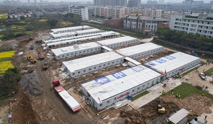 建筑分公司正加快推进山东惠民县防疫设施,7台大小挖机,220余名施工人员正在紧张作业中。截至23日,A、B区隔离间已交付使用,C、F、G区板房安装完成,H区板房安装完成95%,水电管线和卫生洁具全部安装完成。