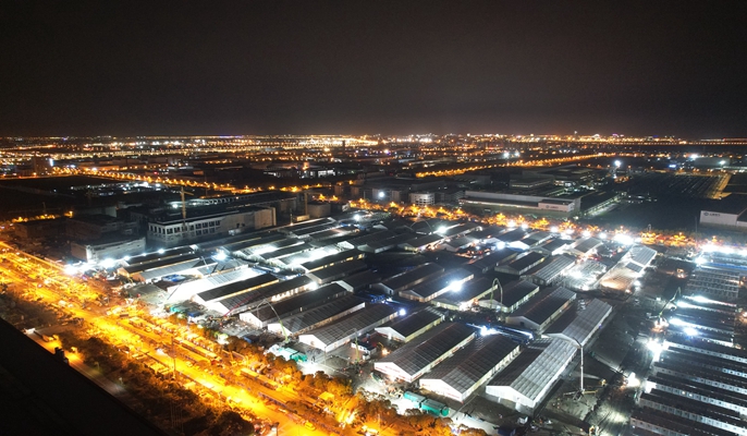 4月19日,援建上海方舱的第八天。面对极短的工期压力,为确保临港方舱医院如期交付,十七冶援建工作组根据现场实际不断强化统筹协调,进一步细化分解施工任务至各参建单位。凌晨的项目建设现场依旧一片灯火通明,一派热火朝天的大干景象,承建临港F16-02地块方舱项目“竹园”区域的800余名中国十七冶集团援建者们正不分昼夜全力冲刺交付节点。