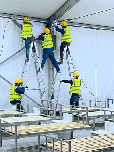 十七冶援建者们与时间赛跑,昼夜大干、分秒必争,全力发起交工冲刺,力争以最快速度完成建设任务,确保方舱医院按期投入使用。