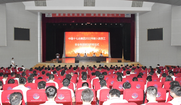 7月23日上午,中国十七冶集团2022年新入职员工安全专项培训正式开班。公司副总经理周金龙,公司工会主席、副总经济师、党委组织部部长魏致家,公司安全总监张杰,达成分公司经理、教培中心主任徐帮兴及300多名新入职员工参加了开班仪式。