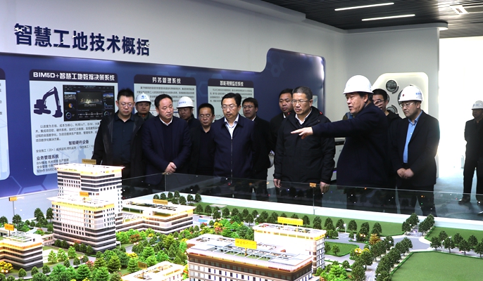 田亮主任参观了项目施工现场、智慧工地展馆等区域,重点了解了项目建设进度,听取了项目负责人关于工程概况、施工进度、智慧工地建设管理等方面工作汇报。田亮主任对项目建设、管理成果给予充分肯定,并表示,平凉市中医医院的建设顺应平凉市大力发展中医药产业的时代浪潮,对于优化区域医疗资源、保护人民生命健康具有重要意义,希望项目团队提高站位、主动作为,在保证工程质量及安全生产的前提下,加快施工进度,力争在计划时间内完成项目建设任务。