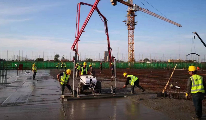 产业园的厂房,其主体结构中混凝土楼板及楼面施工的质量和速度是关键。项目团队紧紧抓住这个“牛鼻子”,开展技术攻关,突破常规做法。在找平层施工中,创新性采用全自动激光整平机,集找平、整平、振捣压实于一体,替代了传统的平板振动器施工工艺,在提高楼板平整度和混凝土密实度的同时,降低劳动强度,提高施工效率。在内墙抹灰施工中,使用全自动水泥石膏喷涂机,用机械喷涂代替人工涂抹,效率提高近4倍,并且喷涂出的浆料与墙面的粘接更牢固,减少后期墙面抹灰层空鼓的质量通病。