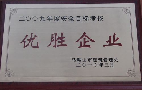 公司获马鞍山市“09年度安全目标考核优胜企业”