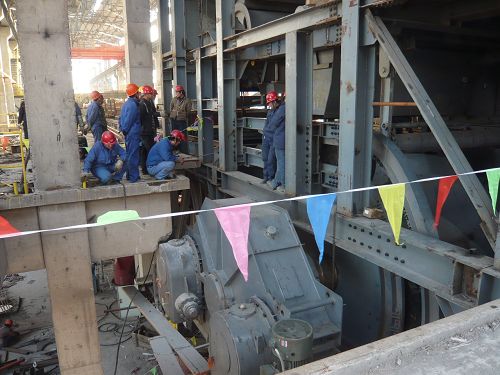 3#烧结机经过燕钢项目部及机装二处全体员工的共同努力,历时四个月的奋战,此次头轮柔性传动的单体试车成功,为下一步130台台车的安装打下了基础,同时也标志着3#烧结工程最大的设备安装已进入收尾阶段。