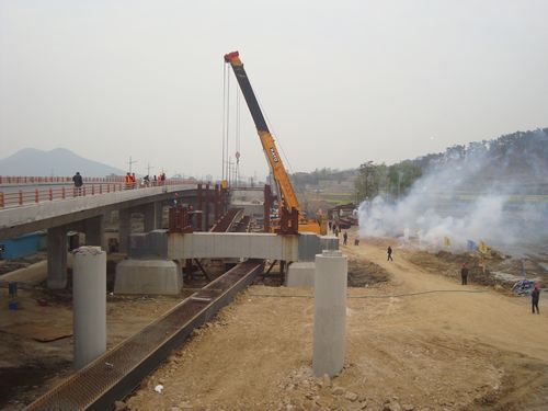 4月8日上午9:08分,随着160T与220T两台汽车吊将长90m、重102T的钢箱梁缓缓抬起并成功起吊到阳湖塘大桥边桥上行桥2#墩~3#墩钢支架上时,由十七冶工程管理公司承建的市阳湖塘大桥边桥钢结构安装已全面展开施工,同时也标志着大桥建设已进入一个新的施工阶段——边桥钢结构安装。 阳湖塘大桥钢结构边桥位于预应力砼主桥两侧,总长度198米,宽度12.3米。钢结构总量约2200吨,钢桥分为桥面系和拱系。钢构件截面形式为箱型和工字型。计划工期3个月,预计6月底结束。
