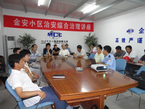 711,十七冶金安小区项目部与金家庄区昭明派出所联合为正在参与金安小区施工的13家建筑单位举办了一场生动的治安综合治理讲座。