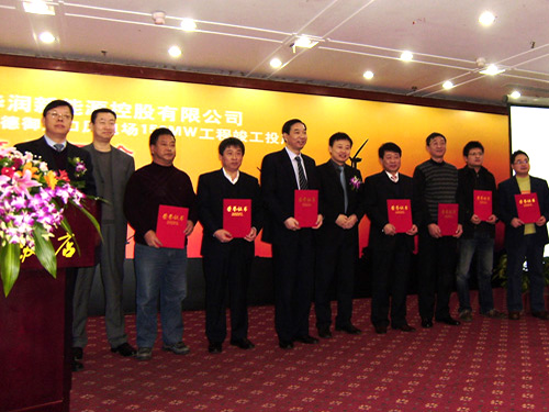 123,风力与太阳能发电工程技术公司经理高胜勇、副经理薛友应业主华润新能源控股有限公司邀请,作为唯一的一家风电吊装单位与承德市政府领导等一起参加了该公司在承德市举办的河北承德御道口风电场150MW工程竣工投产庆典。会上,业主华润新能源控股有限公司副总经理刘日新为风力与太阳能发电工程技术公司颁发了“华润承德御道口项目优秀合作单位”的荣誉证书。