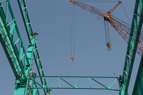 马钢高速车轮用钢生产线技改工程钢结构吊装,自928开工以来,项目部以打造精品,创建“黄山杯”为目标,制定了科学严密的施工方案,做到“关注细节、注重工序、严控过程、确保质量”。为了确保钢结构吊装的施工质量,项目部从工序的细节抓起,每根柱子和横梁的吊装,严格进行垂直度和水平度测量调整,做到横平竖直一丝不苟。现场钢结构安装焊接严格进行探伤检测,焊缝外观饱满度物理检测。现场配备了烘箱和保温桶,对焊接施工过程进行温控,确保冬季施工焊接质量。