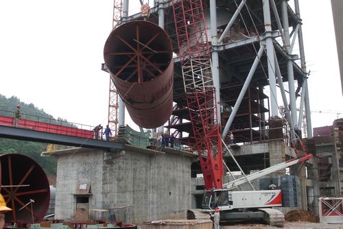 620上午1030分,由水泥工程技术公司承建的池州海螺2×5000t/d水泥熟料生产线烧成系统心脏设备回转窑成功完成第一吊。