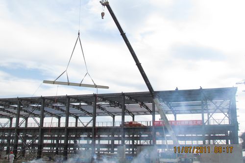 711上午,由甘肃分公司承建的甘肃东兴铝业有限公司酒嘉风电基地高载能特色铝合金节能技术改造项目彩钢板制安工程首批彩钢板顺利吊装。
