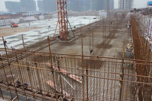 为了加速施工进度,开春以来,项目部周密谋划施工过程,采取“蚕食施工法” 24小时连续作业,随土方清底逐块包抄有序的完成了劣质土层的处理、柱基基坑支模、垫层砼浇筑、防水处理、地板钢筋绑扎等工序和环节。