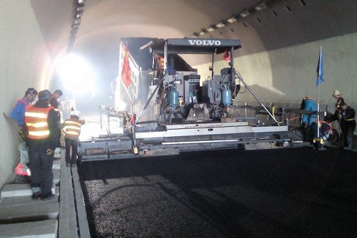 湖北黄石大广南高速东方山隧道首次沥青下面层摊铺