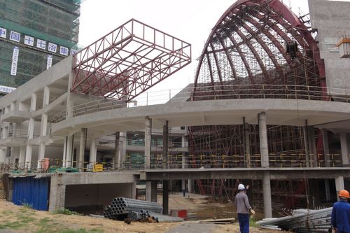 芜湖星隆国际城钢架顺利吊装完毕