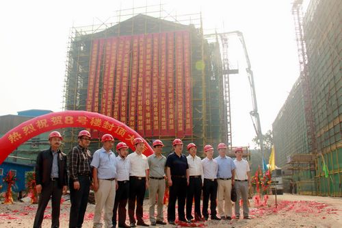10月9日上午,由十七冶城建工程技术公司承建的市马矿新村1—8#楼项目工程最后一栋8#楼主体结构施工顺利封顶。马鞍山市建管处主任阿克斌、市质监站站长苏青、马钢康泰置业公司经理王双品、业主单位永安房地产公司总经理王荣兵和副总经理郭祥以及十七冶城建工程技术公司经理伍昌国、副经理林章忠等到场表示祝贺。 马矿新村项目是市政府十分重视的一项民生工程,自去年10月正式开工以来,项目部克服诸多困难,历时三个多月在今年年初完成了桩基施工。2月份进入主体施工,首栋5#楼于7月8日率先封顶。此后,项目部进一步加强了现场协调力度,合理调配资源,各楼栋陆续结构封顶。施工过程中安全、质量和文明施工管理良好,8#楼封顶后,工程进入了全面的内外装修阶段。