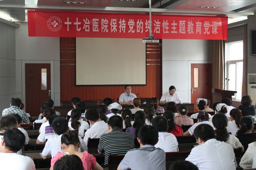 7月14日下午,十七冶医院邀请了市委党校马小林教授,给全院党员上了一堂保持党的纯洁性主题教育党课。 该院上百名党员放弃周六下午休息时间,积极参加党课教育活动。马教授从坚持马克思主义指导思想地位;坚定树立中国特色社会主义理想信念;弘扬以爱国主义为核心的民族精神和改革创新的时代精神;践行社会主义荣辱观等四个方面,讲述了保持党的纯洁性根本上就是保持思想上的纯洁性、队伍的纯洁性、作风的纯洁性。马教授理论与实际相结合的讲解,深深地吸引了广大党员,赢得了阵阵掌声,使大家受到了一次深刻的教育。