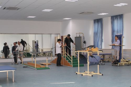 新康复楼共4层,一层为中医特色诊疗和理疗;二楼为住院病房,共28张床位,并设有VIP病房;三楼是病房及pt治疗室,共有38张床位,并设有言语治疗室、作业治疗室及功能评定室。宽阔豪华的pt治疗室一天可以接受一百多人次的治疗。