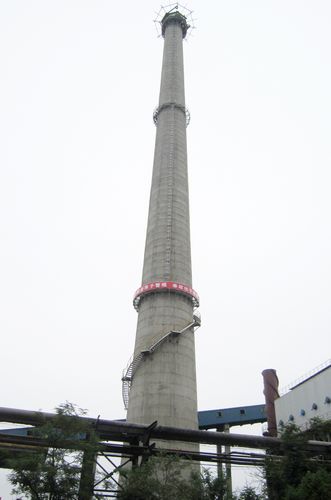 615,由中国十七冶集团甘肃分公司承建的榆钢2#焦炉工程高130m烟囱主体结构顺利封顶。