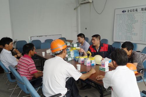 619中冶置业(安徽)公司金安小区项目部为各作业处发放了防暑降温应急药品。与此同时,项目部还与华诚监理公司共同举行了“安全生产月”座谈会,各作业处与会人员对目前金安小区安全生产情况进行了交流,对活动进行了小结。