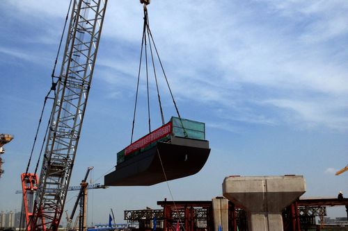 727下午,十七冶城建工程技术公司沈阳南站市政交通工程(一期工程)项目匝道桥7号段钢箱梁吊装施工首战告捷,该段全部28块箱梁吊装顺利完成。