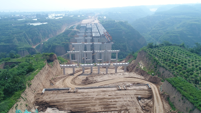 三门峡崤函大道火烧羊沟大桥下部结构完成