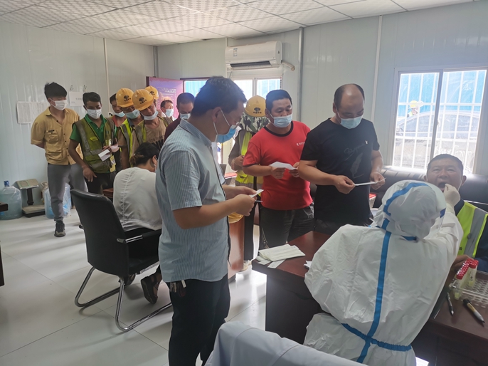 针对近期各地疫情出现反弹,为保障项目员工健康安全,项目部邀请当地医院到现场为员工进行核酸检测。在施工现场,项目部设立了多个采样点位,引导指挥员工有序排队候检;广大员工全程佩戴口罩,有条不紊的排队候检,详细登记个人信息,并依次接受咽拭子样本采集。检测过程中,医护人员对员工们进行了疫情防控安全教育,提醒大家不可松懈精神,要把疫情防控作为一等一的大事来对待,有效增强了大家的思想站位。在规范有序的协调指导下,检测过程非常顺利,一天之内完成了所有人员的咽拭子样本采集工作,为大家安心工作打了一剂“强心针”。