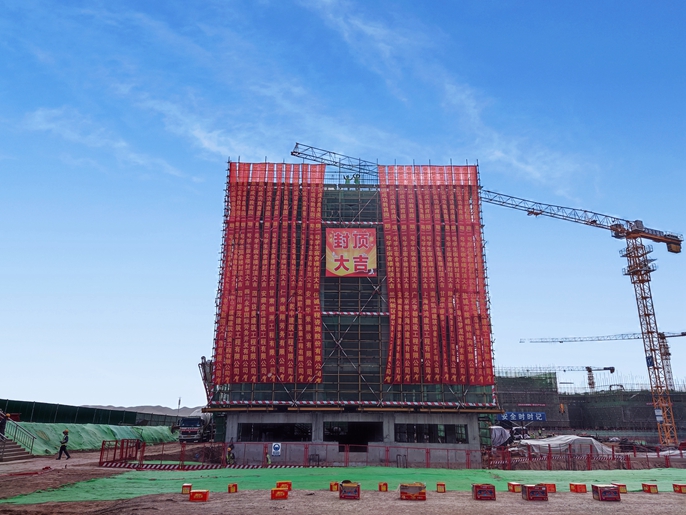 成功教育园一期项目位于兰州新区东侧职教园区内,总建设面积约为15.6万平方米。一期主要建设内容为小学初中、高中教学楼、宿舍楼及其相关配套,建成后可容纳7000名师生生活和学习。此次封顶的1#学生宿舍宿舍为本项目第一栋封顶单体,建筑面积7343.77平方米。