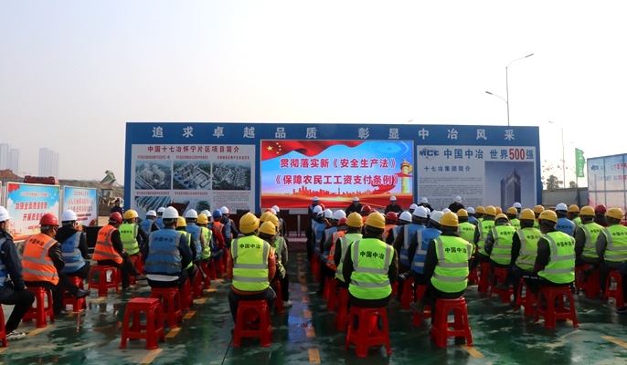 12月7日,怀宁县重点工程建设中心联合十七冶房屋分公司怀宁项目部组织召开贯彻落实新《安全生产法》《保障农民工工资支付条例》学习活动,项目部各协作单位负责人、怀宁高河项目现场工人合计约100人参加了学习。