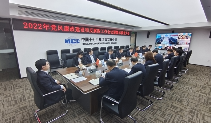 2月25日,中国十七冶集团南京分公司召开2022年党风廉政建设和反腐败工作会议暨警示教育大会。分公司领导班子成员、副三总师、机关各部门负责人、各项目经理领导班子成员参加了会议,会议设主会场和视频分会场。