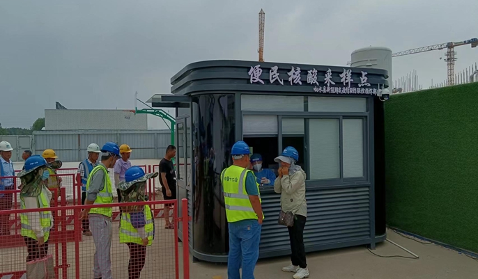针对夏季高温天气带来的卫生环境差问题,项目部开展消杀、卫生整治行动,增派保洁人数,落实“门前三包”制度,确保施工人员宿舍、食堂、厕所、淋浴间设施设备符合标准,满足防暑降温、卫生健康需要,为一线工作人员创造干净、舒适的生活环境。积极开展夏季作业安全健康培训,在安全早课普及防暑技巧及热射病急救知识等,提高作业人员防暑和急救技能,最大程度降低高温中暑事件发生概率。严格按标准设置凉茶亭,完成“送清凉”各项工作,为工友们提供茶水、藿香正气水、清凉油、风油精等防暑药物,严防作业时高温中暑事件发生。结合当地疫情防控需求,为了让一线工作人员更快更便捷地完成日常核酸要求,项目部特设便民核酸采样点,联系医院上门为一线工作人员做核酸,项目部员工自行组织志愿者队伍维护秩序,最快速度完成核酸。合理调整上工时间,减轻高温天气工作强度,采取“做两头、歇中间”或轮换作业的办法,避免高温日照曝晒、疲劳作业,确保一线工作人员劳逸结合、有足够的休息时间。