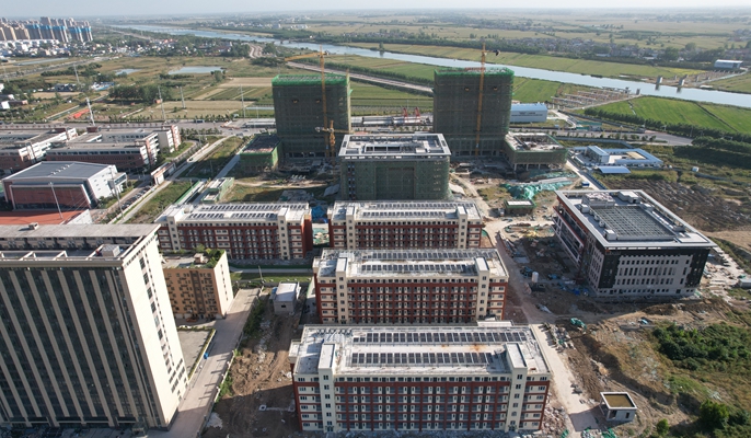 项目全体建设者们克服困难,一手抓项目建设,一手抓疫情防控,与时间赛跑。全体职工坚守一线,每日现场上百作业人员上下联动,让每个环节都按下“快进键”,全速推进施工生产。项目部在抢时间、赶工期的同时,始终不忘保质量、重安全,同时每日做好疫情防控,备足防疫物资,施工现场坚持每日防疫消杀,门岗严格登记检查,定期联系属地医院组织核酸检测,多措施为大干快上保驾护航。截至目前,综合服务中心一至三层墙裙砖施工完成90%,楼梯踏步施工完成30%;图书馆综合楼屋面保温、保护层施工完成,一层地坪施工完成90%,屋面钢结构施工完成;培训中心主楼屋面一层花架施工完成70%,地下室填充墙砌筑完成80%,裙楼钢结构网架施工完成;竞技中心主楼屋面一层花架施工完成50%,汽车坡道底板施工完成,裙楼三层结构施工完成。