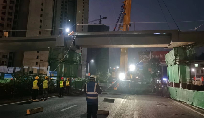 11月28日,中国十七冶集团交通工程技术分公司承建的贵州息烽县御山邸建设项目人行天桥钢箱梁吊装顺利完成。