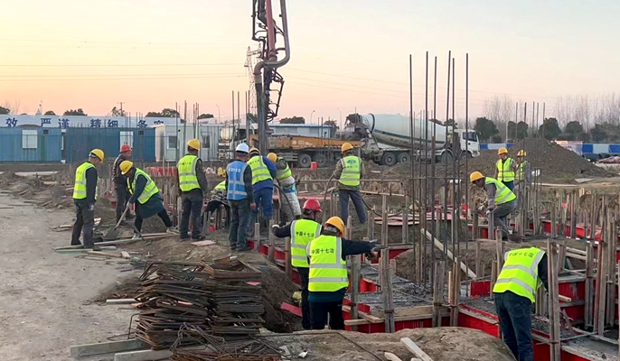 面对工期紧、任务重的压力,春节期间项目团队放弃假期、奋战一线,科学制定施工计划,精心组织各项资源,在1月20日具备大干条件后全力推进、攻坚克难,最终提前1天顺利完成1#厂房基础承台及连梁浇筑工作,为项目冲刺竣工目标奠定坚实基础。